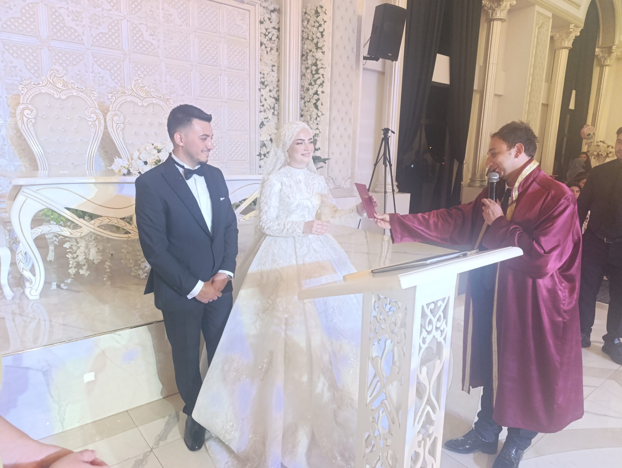 Nikah merasiminin ardından düğüne katılan davetliler müzik eşliğinde gelin ve damatla saatlerce oynayarak pistten inmediler .