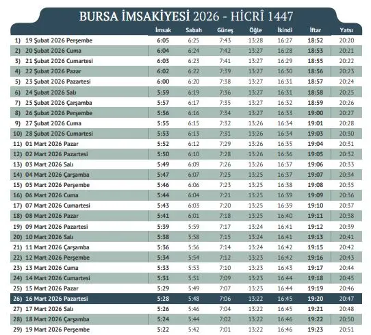 • İlk oruç: 18 Şubat’ı 19 Şubat’a bağlayan gece sahura kalkılacak, ilk iftar 19 Şubat akşamı yapılacak.