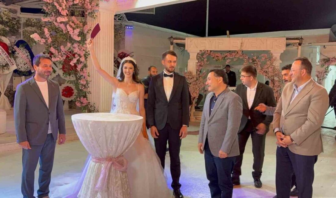 Düğüne katılan Kayseri Valisi Gökmen Çiçek, genç çiftin evlilik cüzdanını Abdullah Karakaş’a vererek, çifte bir ömür boyu mutluluk diledi.