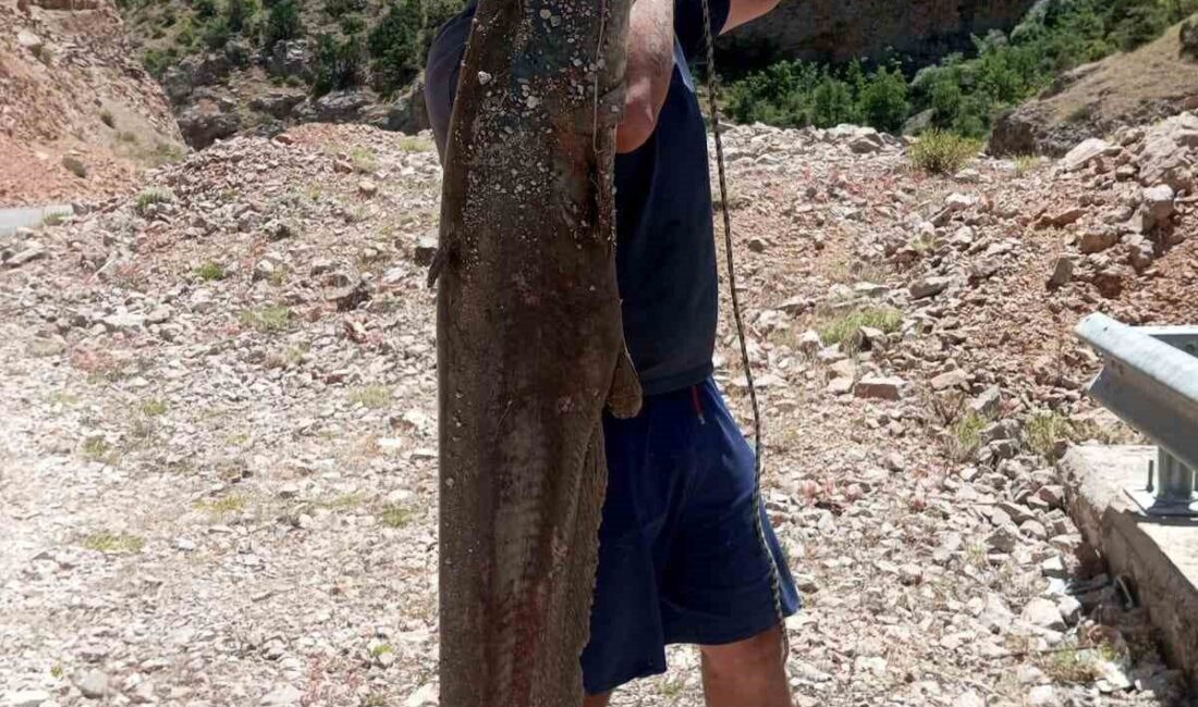 Artvin’in Ardanuç ilçesinde baraj gölünde balık avına çıkan iki arkadaş, biri 43 kilo, diğeri 36 kilo olan iki dev yayın balığı yakaladı. O anlar cep telefonu kamerasıyla kaydedildi.