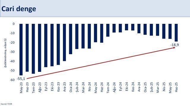 Hazine ve Maliye Bakanı Mehmet Şimşek, “Haziranda 18,9 milyar dolar gerçekleşen yıllık cari açığın ikinci çeyrekte milli gelire oranını yaklaşık yüzde 1,3 öngörüyoruz” dedi.