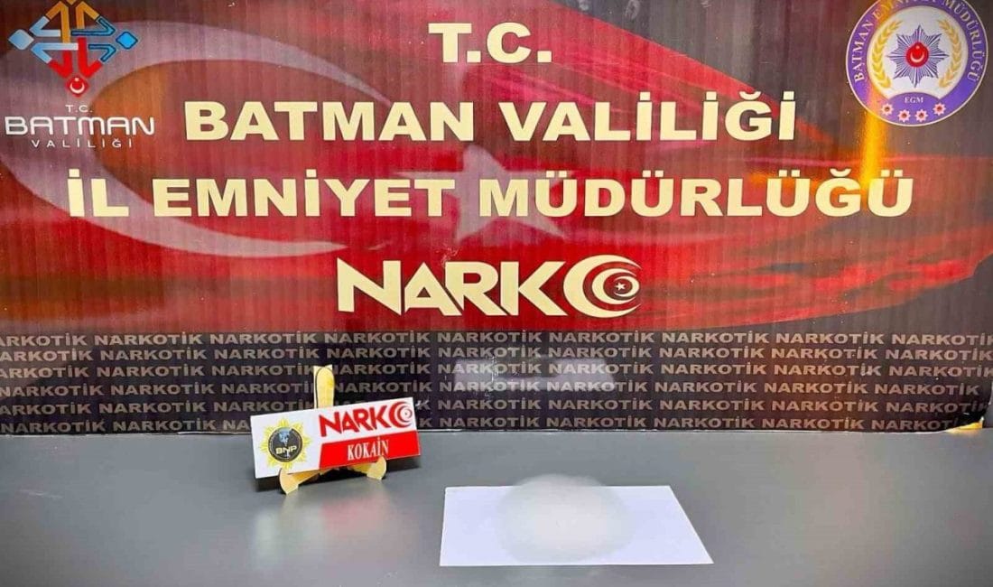 Batman İl Emniyet Müdürlüğü Narkotik Suçlarla Mücadele Şube Müdürlüğü ekipleri, 2 Temmuz 2025 tarihinde uyuşturucu ile mücadele kapsamında il girişindeki uygulama noktasında bir aracı durdurdu. Araçta yapılan aramada 175 gram kokain maddesi ele geçirildi.