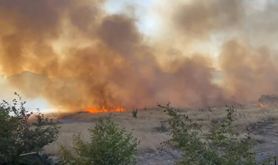 Beylikdüzü’nde otluk alanda yangın çıktı. İtfaiye ekiplerinin yangına müdahalesi devam ederken, yanan alan havadan görüntülendi.