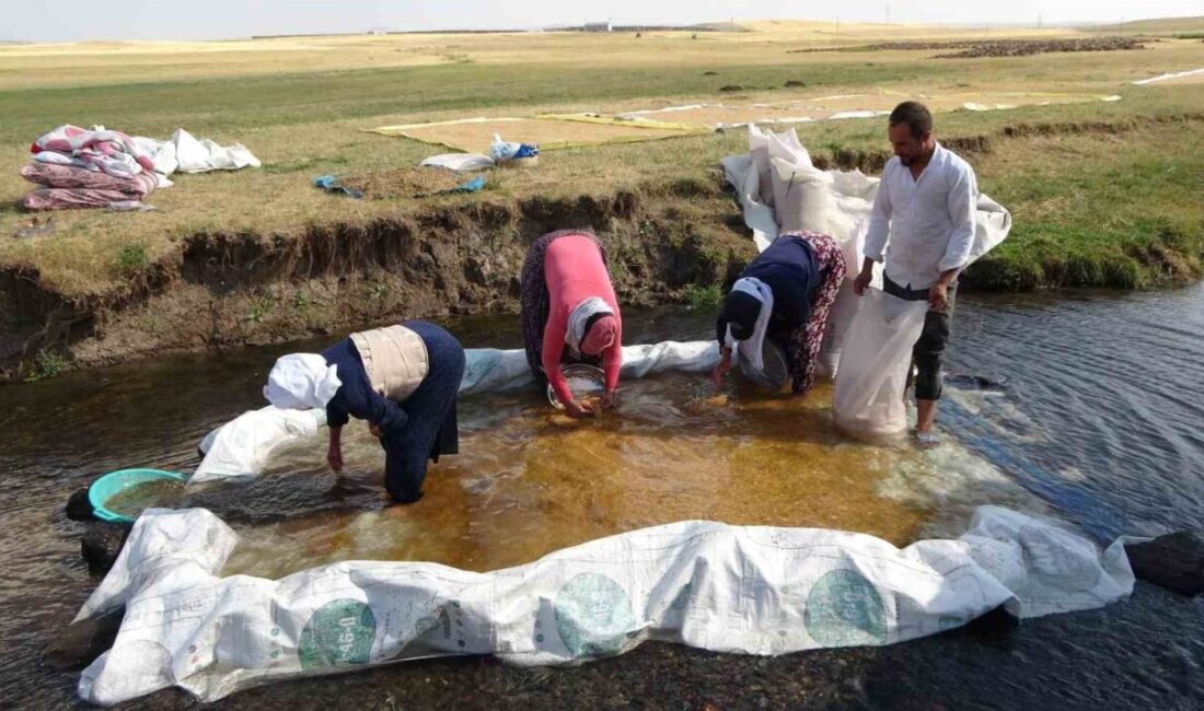 Erzincan’da hasadı yapılan buğday, derelerde yıkanarak değirmenlerde öğütülmek için çeşitli aşamalardan geçiriliyor.