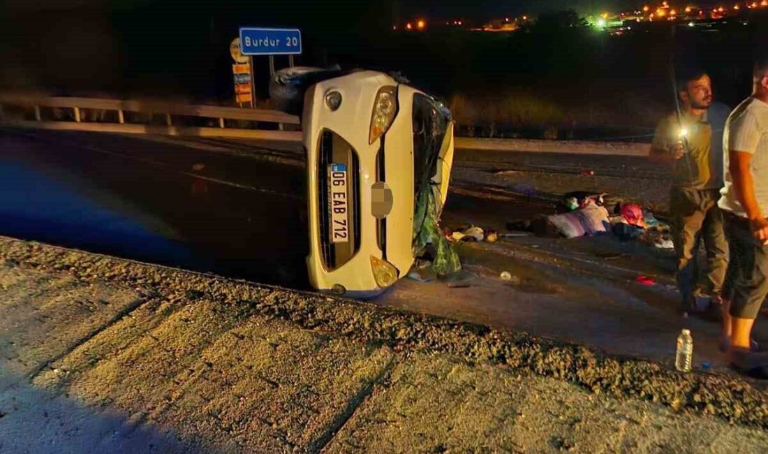 Burdur’da kontrolden çıkan otomobilin refüje düşerek devrilmesi sonucu 3 kişi yaralandı.