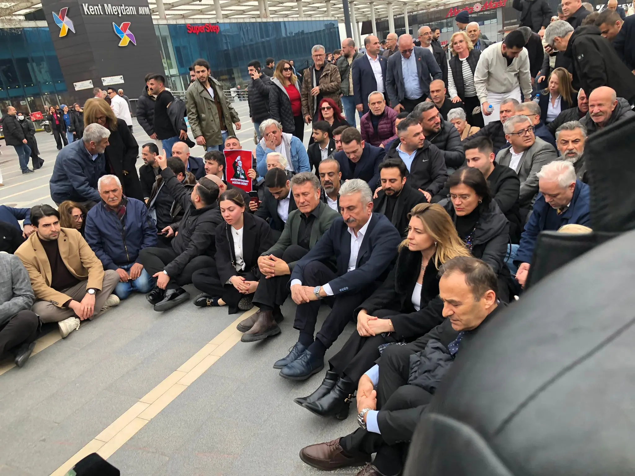 Meclis salonuna alınmayan CHP’li milletvekilleri Orhan Sarıbal, Nurhayat  Altaca Kayışoğlu, İl Başkanı Nihat Yeşiltaş beraberindeki grup daha sonra kent meydanına doğru yürüyüşe geçti ve ardından oturma eyleminde bulundular