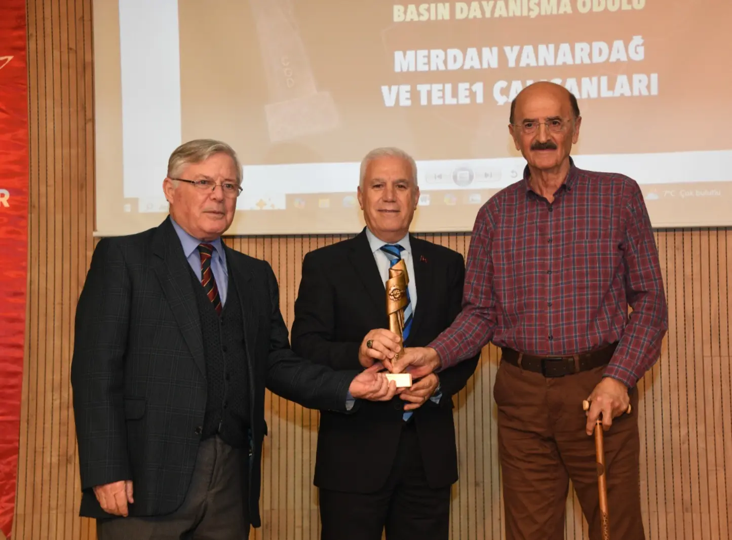 Merdan Yanardağ ve Tele1Çalışanları adına deneyimli gazeteciler Namık Koçak ve Hüsnü Mahalli ödül törenine katıldı. Tele2 adı altında yayıncılığa devam eden ekibin ödülünü Bursa Büyükşehir Belediye Başkanı Mustafa Bozbey takdim etti. Bozbey ödülü verdikten sonra yaptığı kısa konuşmada, cezaevindeki tutuklu gazeteciler Merdan Yanardağ’ın yanı sıra Fatih Altaylı’ya da selam göndererek, “Gazetecilerin kalemini özgürce kullanabileceği günlerin yakın zamanda gelmesini diliyoruz” dedi.