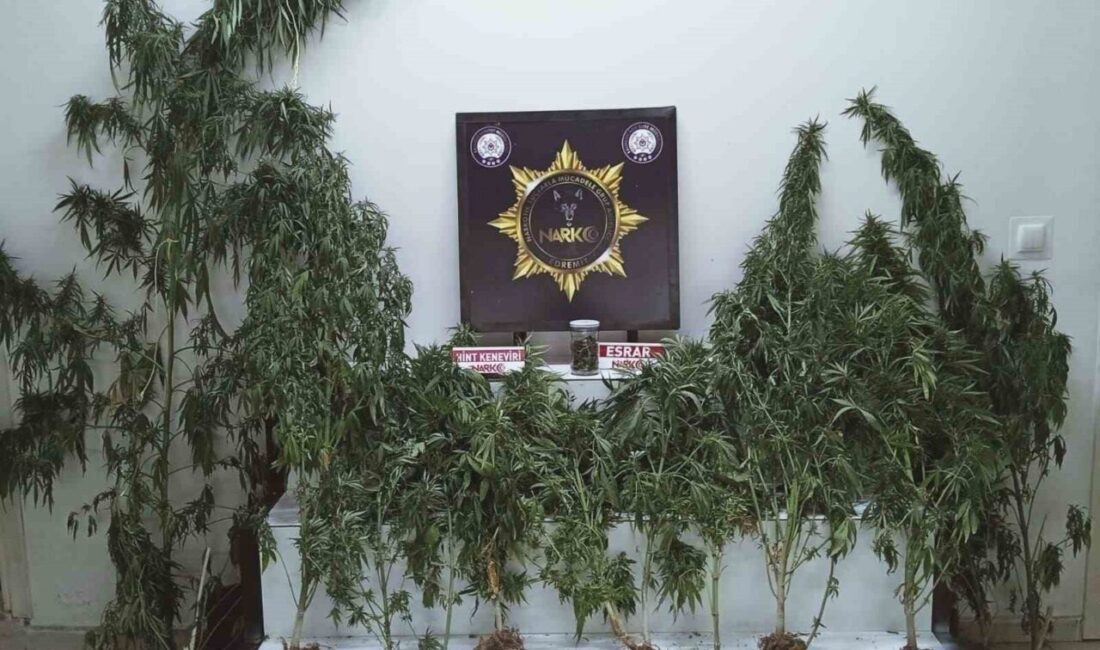 Balıkesir’in Edremit ilçesinde polis ekiplerince düzenlenen operasyonda bir ikamette esrar maddesi ve 14 kök kenevir bitkisi ele geçirildi.