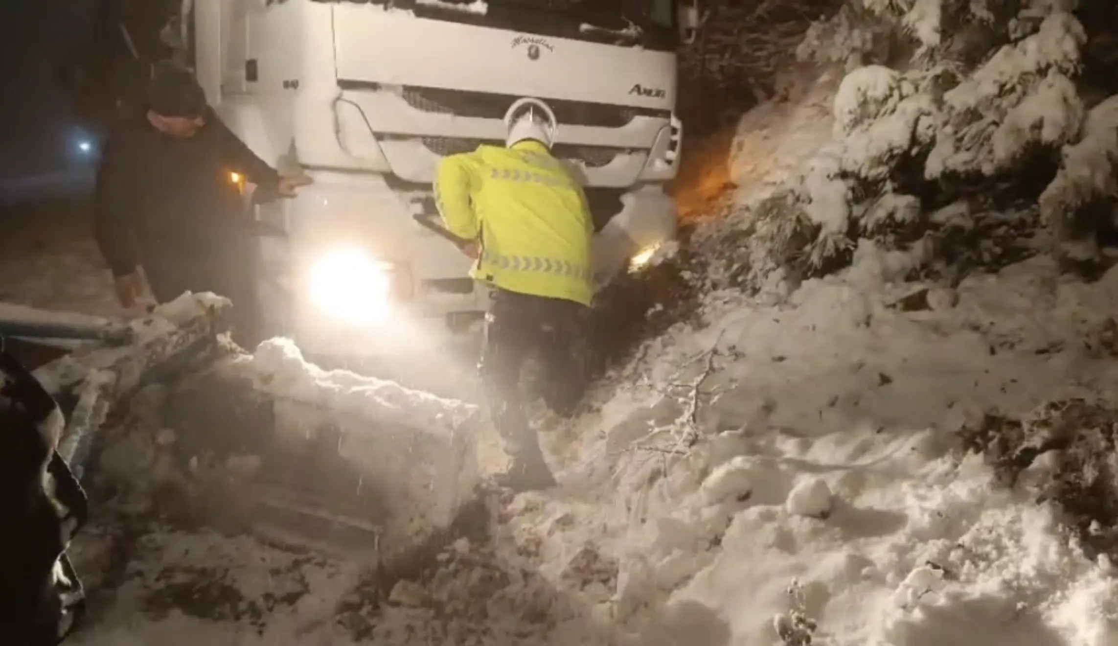 Polis ekipleri, Karayolları ekipleri ve çevredeki vatandaşların da desteğiyle küreklerle kürüme çalışması yaparak yolu açmak için yoğun çaba sarf etti. Yaklaşık 1 saat süren çalışmaların ardından makaslayan tır bulunduğu yerden kurtarıldı. Yolun yeniden trafiğe açılmasıyla birlikte bölgede ulaşım normale dönerken, ekipler sürücülere dikkatli olmaları ve zincirsiz yola çıkmamaları uyarısında bulundu.