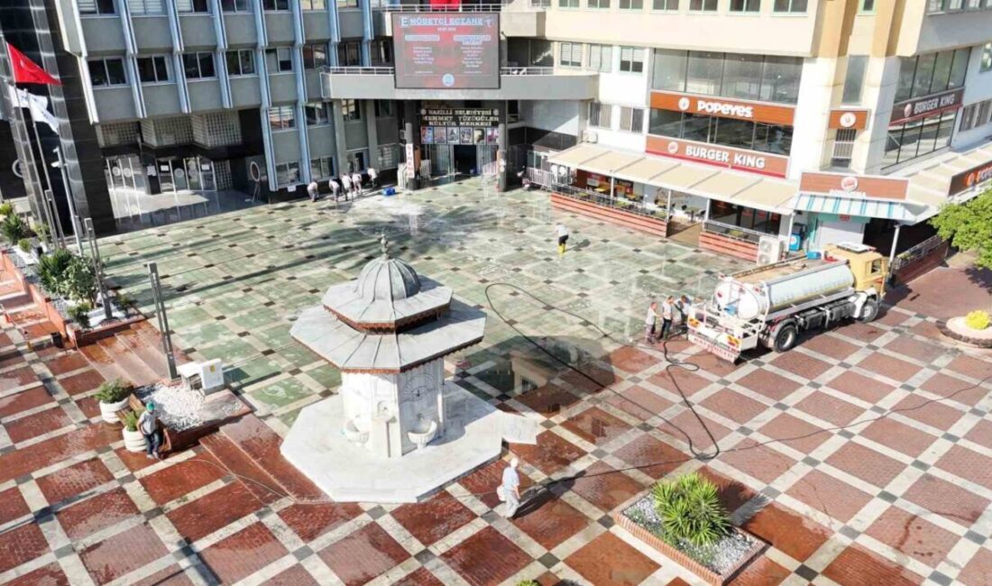 Nazilli’nin kalbi niteliğindeki meydanın genel görünümünün iyileştirilmesi ve hijyen standartlarının artırılması için söz konusu çalışmaların rutin olarak sürdürüleceğini kaydeden Nazilli Belediye Başkanı Dr. Ertuğrul Tetik, sıcak hava şartlarına rağmen gece gündüz demeden özveriyle çalışan tüm saha ekibineteşekküretti.