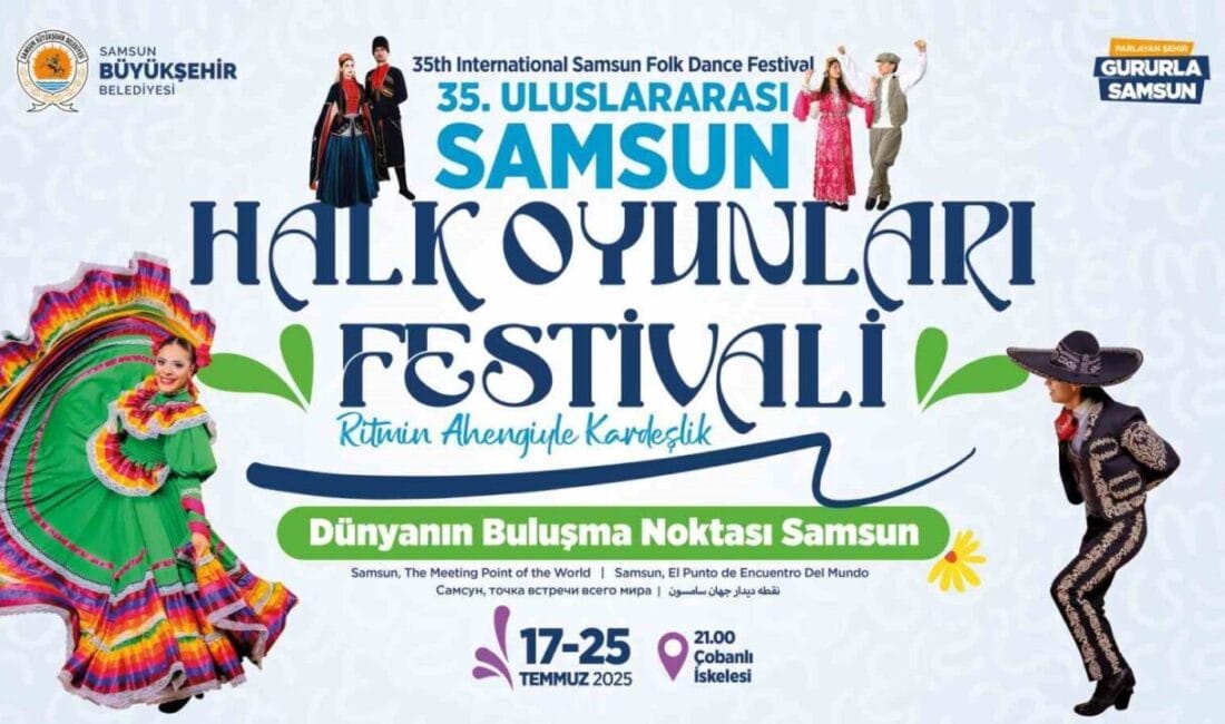 35. Uluslararası Halk Oyunları Festivali ile Samsun bir kez daha dünyanın buluşma noktası olacak. Festival, Samsun Büyükşehir Belediyesi tarafından ‘Ritmin ahengiyle kardeşlik’ sloganı ile bu yıl 35’incisi düzenlenecek Uluslararası Halk Oyunları Festivali Samsun’da 17-25 Temmuz tarihleri arasında gerçekleştirilecek. 13 ülkeden çok sayıda halk oyunları ekibini ağırlayacak, şehri kültür sanatla buluşturacak festival için kentte hazırlıklar devam ediyor. Birbirinden farklı kültürleri bir kez daha Samsun’da buluşturacak festival 9 gün sürecek ve 9 gün boyunca adeta kültür sanat rüzgârı esecek.