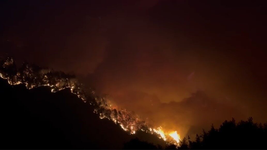 Kestel ile Gürsu ilçeleri arasındaki ormanlık alanda başlayan yangın, gece saatlerinde rüzgarın da etkisiyle hızla