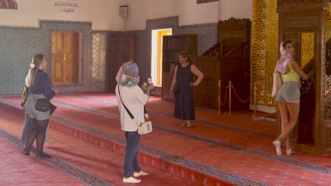 1567 yılında inşa edilen Osmanlı mimarisinin nadide örneklerinden Hüsrev Paşa Camii’ne, özellikle son günlerde şort ve benzeri kıyafetlerle giren turistler görüldü. Sadece yabancı turistlerin değil, bazı yerli ziyaretçilerin de camiyi adeta bir fotoğraf stüdyosu gibi kullanarak yüksek sesle konuştuğu, uygunsuz pozlar verdiği ve giyim adabına dikkat etmediği belirtildi.