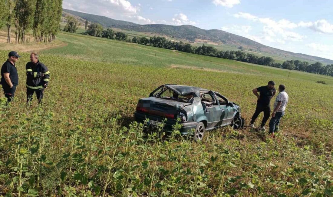 Çorum’un Alaca ilçesinde yoldan çıkan otomobilin tarlaya uçtuğu kazada 1 kişi yaralandı.