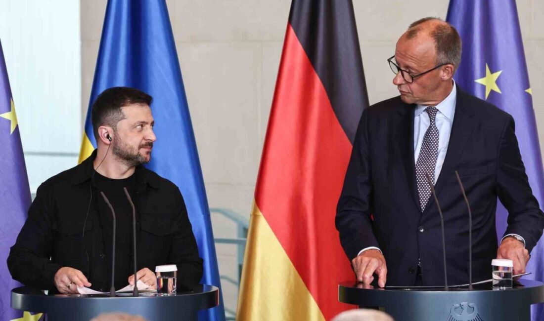 Almanya Başbakanı Friedrich Merz, ABD Başkanı Donald Trump ile Rusya Devlet Başkanı Vladimir Putin’in cuma günü ABD’nin Alaska eyaletinde yapacağı görüşme öncesinde Ukrayna’daki durumun ele alındığı Ukrayna Devlet Başkanı Vladimir Zelenskiy, ABD Başkanı Donald Trump ve AB liderleri ile yaptığı iki ayrı video konferans görüşmesinin ardından Zelenskiy ile ortak basın toplantısı düzenledi.